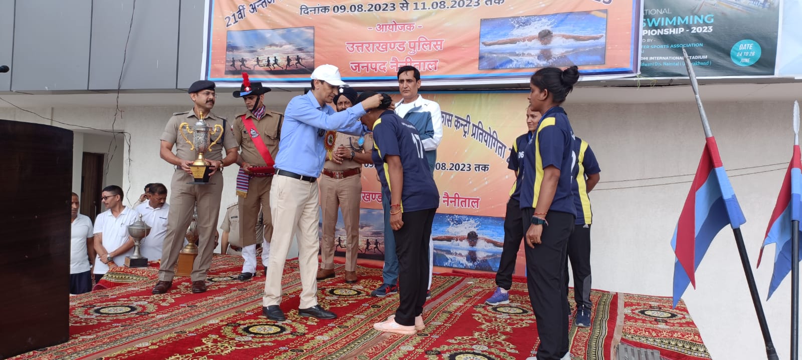अल्मोड़ा दिनाँक 09-08-2023 से दिनाँक 11-08-2023 तक इंदिरा गांधी इंटरनेशनल स्टेडियम गौला पर हल्द्वानी जनपद नैनीताल में आयोजित हुई 21वीं प्रादेशिक अंतर जनपदीय/वाहिनी तैराकी//क्रॉस कंट्री प्रतियोगिता 2023 में अल्मोड़ा पुलिस के खिलाड़ियों (महिला/पुरूष वर्ग) ने *टीम प्रभारी अपर उप निरीक्षक अनवर अहमद व टीम कोच मुख्य आरक्षी प्रकाश कार्की* के नेतृत्व में शानदार प्रदर्शन कर क्रॉस कंट्री (10 कि0मी0 रनिंग) महिला वर्ग *कुल 02 पदक* (01गोल्ड,01 सिल्वर) अर्जित किये