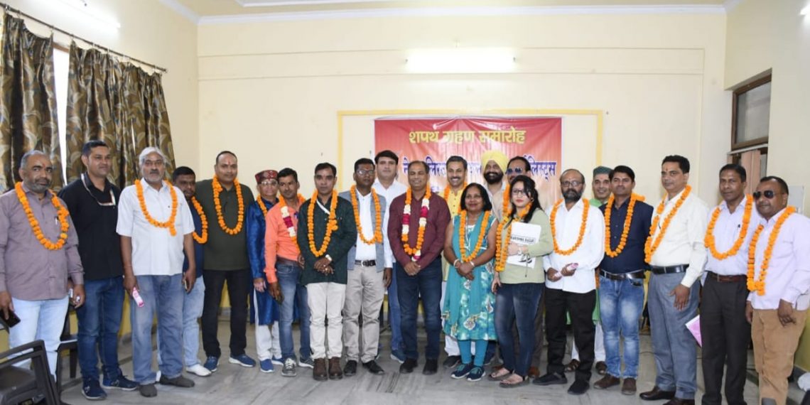 शपथग्रहण समारोह में मुख्य अतिथि ज्वालापुर के विधायक रवि बहादुर ने पहले क्रम में नवनिर्वाचित कार्यकारिणी के जिलाध्यक्ष पद के लिए प्रमोद कुमार पाल एवं महासचिव पद पर राहुल शर्मा को शपथ दिलाई। दूसरे क्रम में संजु पुरोहित ने कोषाध्यक्ष, चौ0 महेश सिंह और सत्यापाल मलिक ने उपाध्यक्ष, नवीन पाण्डे ने सचिव, अश्वनी धीमान ने संगठन मंत्री, नवीन कश्यप ने प्रचार मंत्री पद की शपथ ली। इसके बाद श्री विक्रम सिंह सिद्धु, हरिनारायण जोशी, सुदेश आर्या, विनोद चौहान, सुनील शर्मा, राजवेन्द्र, अकरम फारूकी ने कार्यकारिणी सदस्य के रूप में स्वच्छ और निष्पक्ष पत्रकारिता का पोषक बनकर पक्षपात, अनुराग या द्धेष के बिना पत्रकार हित में कार्य करने की शपथ ली।