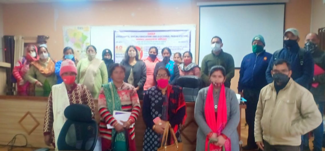 अल्मोड़ा 05 जनवरी, 2022 जिला निर्वाचन अधिकारी/जिलाधिकारी वन्दना सिंह ने आज कलेक्ट्रेट सभागार में विधानसभा क्षेत्र सोमेश्वर व अल्मोड़ा के समस्त बी0एल0ओ0 के साथ बैठक की। बैठक में जिलाधिकारी ने सभी बी0एल0ओ0 को उनके क्षेत्र में मतदान को बढ़ाने हेतु किए जा रहे कार्यक्रमाें की जानकारी ली। उन्होंने कहा कि हमें शत-प्रतिशत मतदान हेतु लोगों को जागरूक करना होगा। इस बैठक में उन्होंने स्वीप कार्यक्रमों की जानकारी भी बी0एल0ओ0 से ली। इस अवसर पर रिटर्निंग आफिसर गौरव पाण्डे, जी0एस0 चैहान व जिला समन्वयक स्वीप विनोद राठौर उपस्थित रहे।