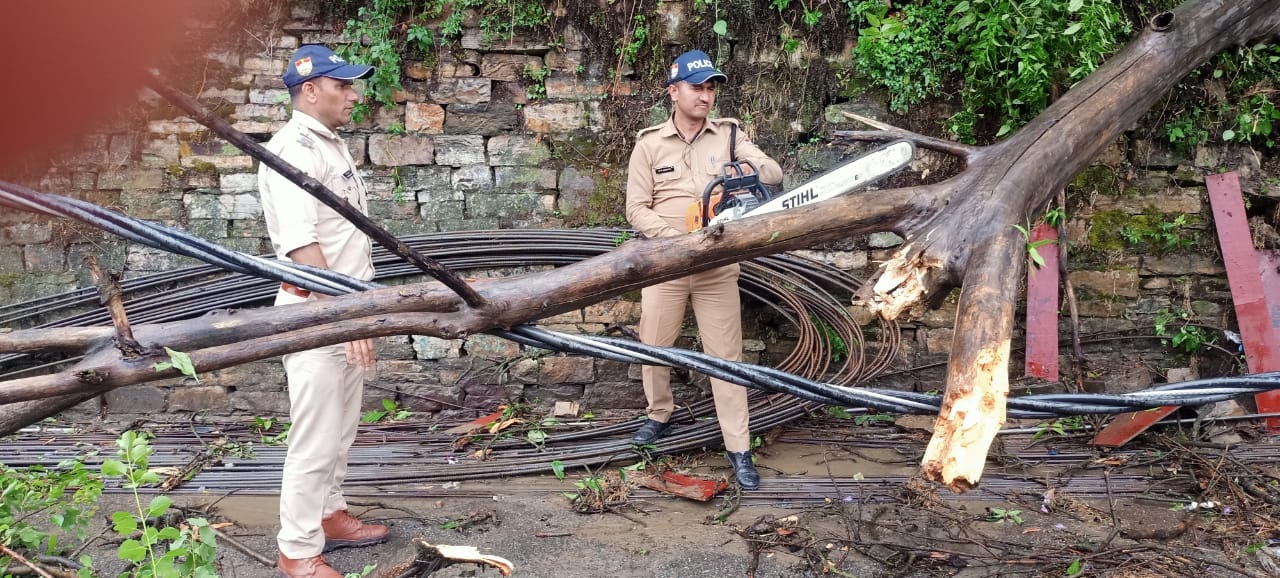 कोतवाली अल्मोड़ा पुलिस द्वारा आंधी तूफान, तेज बारिश से M.E.S के पास सड़क पर गिरे पेड़ को हटाकर बाधित यातायात को किया सुचारू