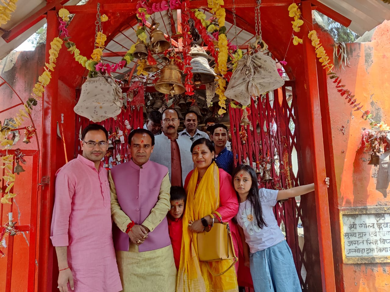 अल्मोड़ा 28 मई, 2022 मा0 मंत्री चिकित्सा स्वास्थ्य, चिकित्सा शिक्षा, सहकारिता, उच्च शिक्षा, विद्यालयी शिक्षा एवं संस्कृत शिक्षा डा0 धन सिंह रावत ने शनिवार को अल्मोड़ा पहुॅचकर प्रसिद्व चितई गोलू मन्दिर में अपने परिवारजनों के साथ पूजा अर्चना की और प्रदेश की खुशहाली के लिए कामना की। पूजा अर्चना के बाद उन्होंने मन्दिर में आने वाले श्रद्वालुओं को दी जाने वाली सुविधाओं के बारे में जानकारी प्राप्त की। उन्होंने कहा कि प्रदेश सरकार द्वारा धार्मिक, संस्कृति पर्यटन को बढ़ावा देने के लिए सभी धार्मिक स्थलों को सर्किट के रूप में विकसित करने का काम किया जा रहा है। इस दौरान उनकी धर्मपत्नी श्रीमती दीपा रावत, जिला सहकारी बैंक के अध्यक्ष ललित लटवाल, बलवन्त मनवाल, पुष्कर सिंह पोखरिया, विनीत बिष्ट, दर्शन बिष्ट, मुख्य चिकित्साधिकारी डा0 आर0सी0 पंत सहित अन्य लोग उपस्थित थे।
