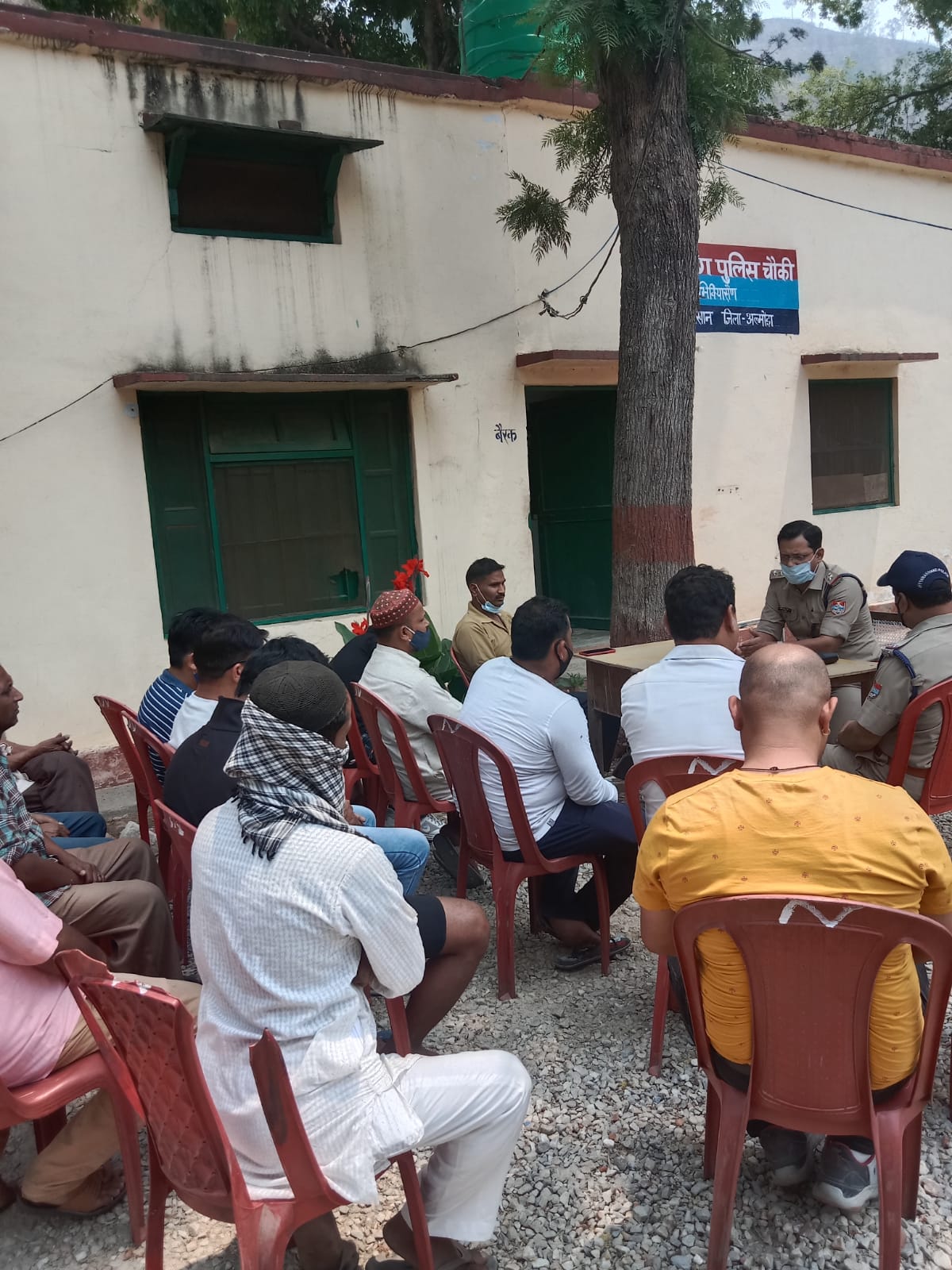 आज दिनांक- 01.04.2022 को प्रभारी थानाध्यक्ष ओम प्रकाश नेगी* द्वारा आगामी ईद उल फितर त्यौहार को शान्तिपूर्वक सम्पन्न कराने हेतु कस्बा भिकियासैंण* में पीस कमेटी की मीटिंग आयोजित की गई, जिसमें स्थानीय संभ्रान्त लोगों के अलावा स्थानीय व्यापार मण्डल, टैक्सी यूनियन, क्षेत्र के ग्राम प्रधान, सीएलजी सदस्य, व्यापार मण्डल के पदाधिकारी भी उपस्थित रहे। बैठक में उपस्थित सभी लोगों से ईद उल फितर को शान्ति पूर्वक एवं सौहार्दपूर्ण वातावरण में मनाने की अपील की गयी । इसके अतिरिक्त इवनिंग स्ट्रौम अभियान के अंतर्गत थाना भतरौंजखान क्षेत्र अंतर्गत होटल ढाबा सार्वजनिक स्थानों पर शराब पीने व पिलाने वाले व्यक्तियों तथा खतरनाक तरीके से वाहन चलाने वाले वाहन चालकों दोषपूर्ण नंबर प्लेट लगी आदि वाहनों की चेकिंग करते हुए सार्वजनिक स्थान पर शराब पीने पिलाने न्यूसेंस फैलाने वाले लोगों पर पुलिस एक्ट के अंतर्गत कार्रवाई की गई एवं तीन व्यक्तियों के चालान कर ₹750 संयोजन शुल्क वसूला गया व खतरनाक तरीके से वाहन चलाने वाले एक वाहन चालक कोर्ट चालान एवं दोषपूर्ण नम्बर प्लेट लगाने वाले वाहन चालकों के विरुद्ध मोटर वाहन अधिनियम के अंतर्गत चलान की कार्रवाई की गई।