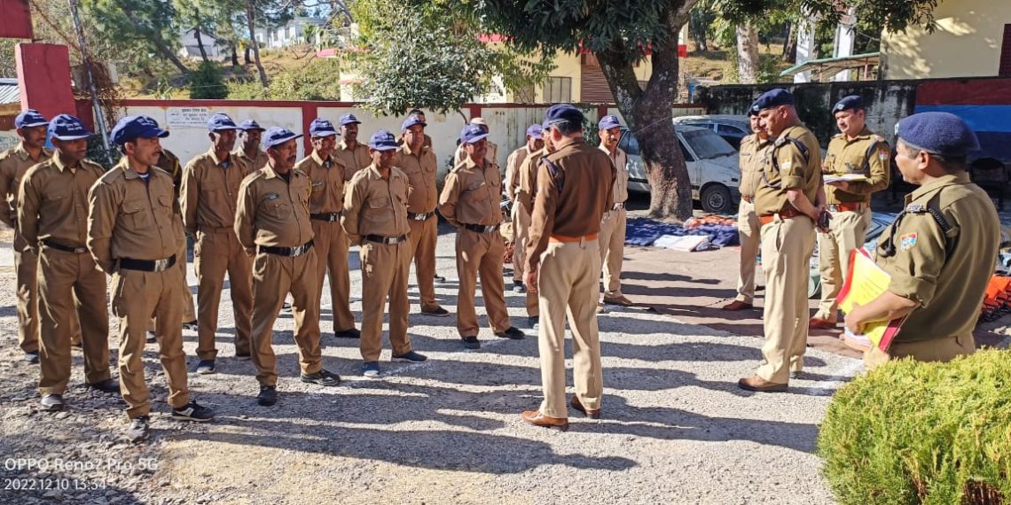अल्मोड़ा आज दिनांक 10.12.2022 को  पुलिस उपाधीक्षक तिलकराम वर्मा  द्वारा थाना द्वाराहाट का अर्द्धवार्षिक निरीक्षण किया गया और निरीक्षण के दौरान थाना परिसर, कर्मचारी बैरिक, भोजनालय, हवालात, थाना कार्यालय के सीसीटीएनएस, महिला हैल्प डेस्क, मालखाना, माल मुकदमाती, सरकारी सम्पत्ति, थाना अभिलेखो, आपदा प्रबन्धन उपकरणों, दंगा नियन्त्रण उपकरणों का निरीक्षण किया गया। इस दौरान थानाध्यक्ष राजेन्द्र सिंह बिष्ट, उपनिरीक्षक अवनीश कुमार, हेड मोहर्रिर गणेश सिंह राणा के अलावा थाने के समस्त कर्मचारी मौजूद रहे।