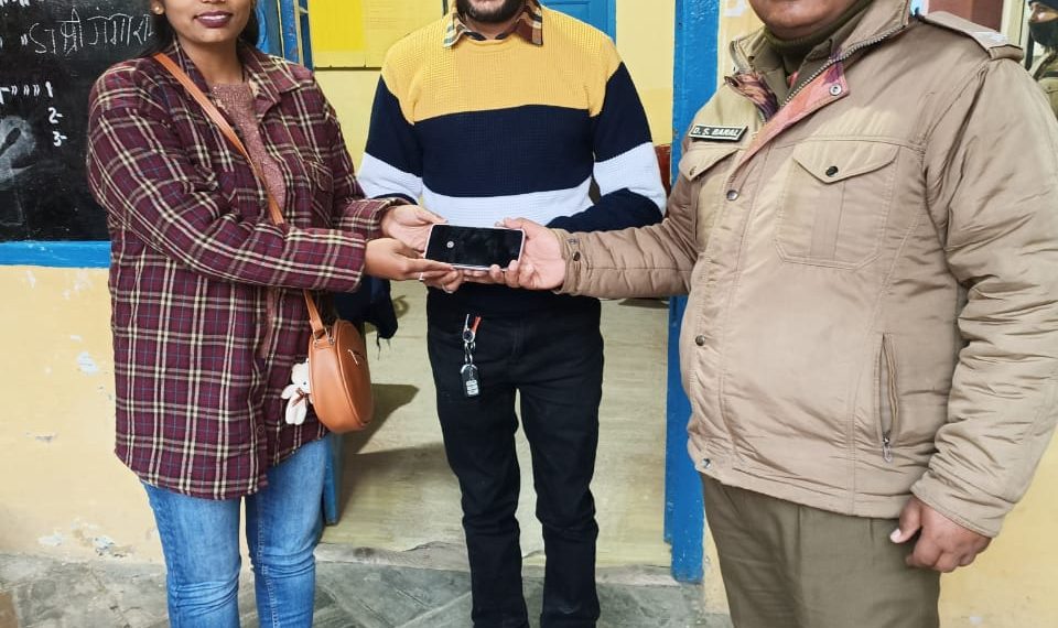 अल्मोड़ा यहां से बड़ी खबर जनपद बागेश्वर भराड़ी निवासी डॉ0 श्री बृजेश किशोर घटियाल अपनी पत्नी रजनी घटियाल के साथ देहरादून से आ रहे थे अल्मोड़ा पहुचने पर श्रीमती रजनी घटियाल का मोबाइल फोन वन प्लस 10 प्रो कीमती लगभग 75000/- करबला के पास कहीं गिर गया था। जो काफी खोजबीन के बाद भी नहीं मिल रहा था, जिस पर डॉक्टर बृजेश किशोर घटियाल द्वारा अपनी पत्नी के फोन गुम हो जाने की सूचना कोतवाली अल्मोड़ा को दी, जिस पर प्रभारी निरीक्षक कोतवाली अल्मोड़ा राजेश कुमार यादव द्वारा तत्काल चीता मोबाईल में नियुक्त हे0का0 धीरेन्द्र बड़ाल गुम हुये मोबाईल फोन ढूंढने हेतु रवाना किया गया। हे0कानि0 धीरेन्द्र बड़ाल द्वारा लोगों से पूछताछ व जानकारी जुटाकर काफी ढूढंखोज करने के बाद फोन को तलाश कर लिया गया। जिसे सलामत मोबाइल स्वामी श्रीमती रजनी घटियाल के सुपुर्द किया गया।अपना कीमती मोबाइल फोन को वापस पाकर मोबाईल स्वामी द्वारा खुशी जाहिर कर हे0कानि0 धीरेन्द्र बड़ाल का धन्यवाद व्यक्त किया व त्वरित कार्यवाही के अल्मोड़ा पुलिस की सराहना की।