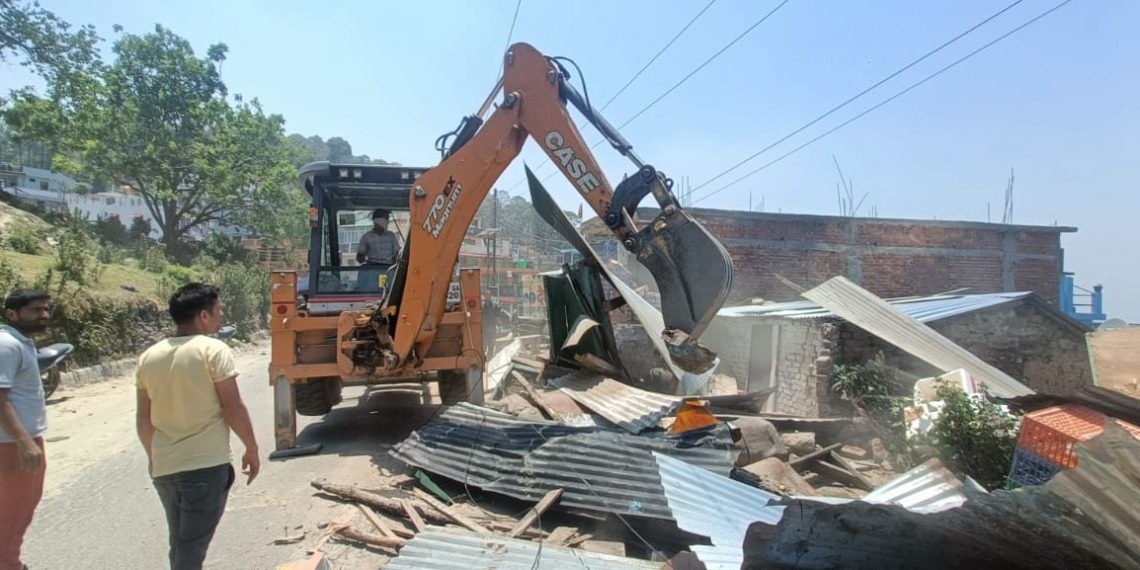 अल्मोड़ा वरिष्ठ पुलिस अधीक्षक राम चन्द्र राजगुरु के निर्देशन में जनपद में अवैध स्थायी/अस्थायी अतिक्रमण के विरुद्ध प्रचलित अभियान के क्रम में क्षेत्राधिकारी रानीखेत श्री टी0आर0वर्मा के पर्यवेक्षण में दिनांक- 22.05.2023 को प्रभारी निरीक्षक कोतवाली रानीखेत अरुण कुमार के नेतृत्व में पुलिस बल, तहसीलदार सुश्री मनीषा मारकाना के नेतृत्व में राजस्व विभाग टीम कानूनगो, राजस्व उपनिरीक्षक व PWD सहायक अभियन्ता श्री के0एस0 बिष्ट के द्वारा रानीखेत क्षेत्र में अवैध स्थायी/अस्थायी अतिक्रमण के विरुद्ध संयुक्त रुप से अभियान चलाया गया।अतिक्रमण अभियान के दौरान गनियाद्योली बाजार में लोक निर्माण विभाग की सरकारी भूमि पर अतिक्रमण करने पर करीब *20 अतिक्रमणकारियों के विरुद्ध कार्यवाही करते हुए स्थायी/अस्थायी अतिक्रमण को जेसीबी से हटाया गया तथा अन्य अतिक्रमणकारियों को नोटिस तामील कराने की कार्यवाही सम्पादित की गयी। इसके उपरांत टीम द्वारा पिलखोली बाजार क्षेत्र में सरकारी भूमि पर अवैध अतिक्रमण चिन्हीकरण की कार्यवाही सम्पादित करते हुए पैमाईश की गई* तथा अवैध अतिक्रमणकारियों को अतिक्रमण हटाने हेतु सम्बन्धित विभाग PWD द्वारा नोटिस तामील कराये गये। उक्त के अतिरिक्त संयुक्त टीम द्वारा वन क्षेत्राधिकारी श्री तापष मिश्रा के साथ गनियाद्योली रेन्ज ऑफिस के नजदीक* वन क्षेत्र में अतिक्रमित कर बनायी गयी धार्मिक अवसंरचना के धवस्तीकरण की कार्यवाही कर वन भूमि को अतिक्रमण मुक्त कराया गया।यह अभियान जारी रहेगा।