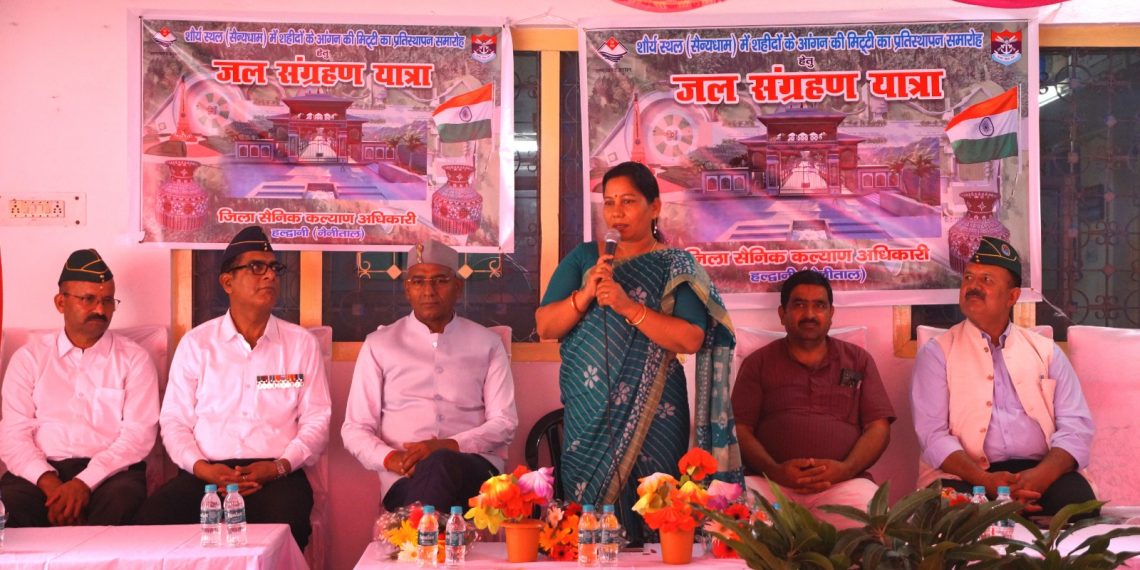 हल्द्वानी 01 जुलाई 2023  जिला सैनिक कल्याण एवं पुनर्वास कार्यालय हल्द्वानी परिसर में सोमवार को अध्यक्ष जिला पंचायत बेला तोलिया, विधायक लालकुऑ डॉ. मोहन सिंह बिष्ट तथा जिला सैनिक कल्याण एवं पुनर्वास अधिकारी कर्नल0 सुबोध शुक्ला द्वारा जनपद की प्रमुख नदियों रामगंगा तरंगिणी, गौला तटिनी तथा कोसी सरिता के जल को कलशों में भरकर सैन्यधाम देहरादून के लिए हरी झंडी दिखाकर रवाना किया।
