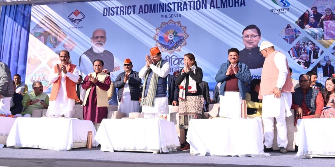 अल्मोड़ा 19 नवम्बर, 2022 अपने दो दिवसीय अल्मोड़ा प्रवास के दौरान आज प्रदेश के मा0 मुख्यमंत्री पुष्कर सिंह धामी द्वारा जनपद अल्मोड़ा विकासखण्ड के हवालबाग में जिला प्रशाासन द्वारा आयोजित आजीविका महोत्सव-2.0 कार्यक्रम में मुख्य अतिथि के रूप में प्रतिभाग किया। यहां पहुंचने पर भाजपा कार्यकर्ताओं ने मा0 मुख्यमंत्री का जोरदार स्वागत किया। कार्यक्रम की शुरूआत में मा0 मुख्यमंत्री ने रूरल बिजनेस इनक्यूबेटर (आर0बी0आई0) में आयोजित कार्यशाला में प्रतिभाग किया और किये जा रहे गतिविधियों व उद्यमियों से जानकारी प्राप्त की। इसके पश्चात् मा0 मुख्यमंत्री ने पर्यटन विभाग द्वारा आयोजित साईकिल रैली को हरी झण्डी दिखाकर रवाना किया।
