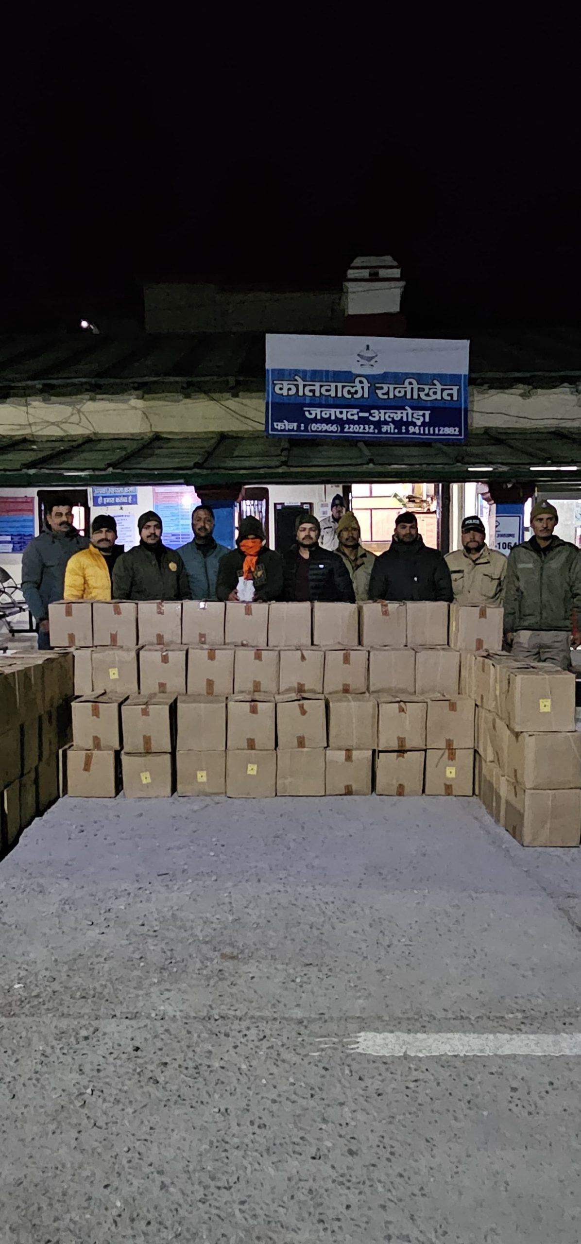 अल्मोड़ा वरिष्ठ पुलिस अधीक्षक देवेन्द्र पींचा देवेन्द्र पींचा,द्वारा आगामी लोकसभा निर्वाचन के दृष्टिगत समस्त थाना/चौकी व एसओजी/एएनटीएफ प्रभारियों को जनपद में आपराधिक गतिविधियों की रोकथाम व अवैध मादक पदार्थों की तस्करी/बिक्री पर अंकुश लगाने हेतु नियमित रुप से प्रभावी चैंकिग अभियान चलाकर नशा तस्करों के विरुद्ध कड़ी कार्यवाही के निर्देश दिये गये है। इसी क्रम में सीओ अल्मोड़ा/रानीखेत श्री विमल प्रसाद के पर्यवेक्षण में जनपद पुलिस द्वारा लगातार की जा रही चेकिंग व पेट्रोलिंग के दौरान अवैध तस्करी की रोकथाम में एक बड़ी सफलता पुलिस टीम के हाथ लगी है। दिनांक- 26.02.2024 की रात्रि में प्रभारी निरीक्षक कोतवाली रानीखेत हिमांशु पंत के नेतृत्व में रानीखेत पुलिस व प्रभारी एसओजी श्री सुनील सिंह धानिक व प्रभारी एएनटीएफ श्री सौरभ कुमार भारती द्वारा एसओजी/एएनटीएफ टीम के साथ संयुक्त चेकिंग अभियान के दौरान रानीखेत क्षेत्र में ऐना गांव से करीब 500 मीटर आगे बग्वाली पोखर की तरफ कोरीछीना की ओर से आ रहे वाहन संख्या- यू0के0-01 सी0ए0-1427 पिकअप को रुकने का ईशारा किया तो वाहन चालक अचानक वाहन को रोककर वापस मोड़ने का प्रयास करने लगा जिसे पुलिस टीम द्वारा त्वरित कार्यवाही करते हुए मौके पर ही रोक लिया गया। वाहन में वाहन चालक मौजूद था, जिसने पूछताछ में वाहन में अवैध शराब होने की बात पुलिस टीम को बताई, जिस पर वाहन पिकअप की तलाशी लेने पर कुल 120 पेटियों में 5,760 पव्वे अवैध देशी शराब गुलाब मार्का बरामद हुई। पूछताछ में चालक द्वारा उक्त अवैध शराब तस्करी के उद्देश्य से लेकर जाना बताया गया। बरामदगी के आधार पर वाहन चालक/अभियुक्त कुन्दन सिंह कनवाल को गिरफ्तार करते हुए अवैध शराब परिवहन में प्रयुक्त वाहन पिकअप को सीज किया गया। अवैध शराब की बरामदगी व अभियुक्त की गिरफ्तारी होने पर कोतवाली रानीखेत में अभियुक्त के विरुद्ध धारा-60/72 आबकारी अधिनियम के अन्तर्गत एफआईआर पंजीकृत कर आवश्यक कार्यवाही की जा रही है। जिसमें कुन्दन सिंह कनवाल, उम्र- 34 वर्ष पुत्र भूपाल सिंह कनवाल, निवासी लोअर मालरोड खत्याड़ी, अल्मोड़ा को गिरफ्तार किया गया है। इसके पास 120 पेटियों में कुल 5760 पव्वे अवैध देशी शराब गुलाब मार्का बरामद हुई जिनकी कीमत लगभग कीमत– 5,18,400/- रुपये बताई जा रही है।