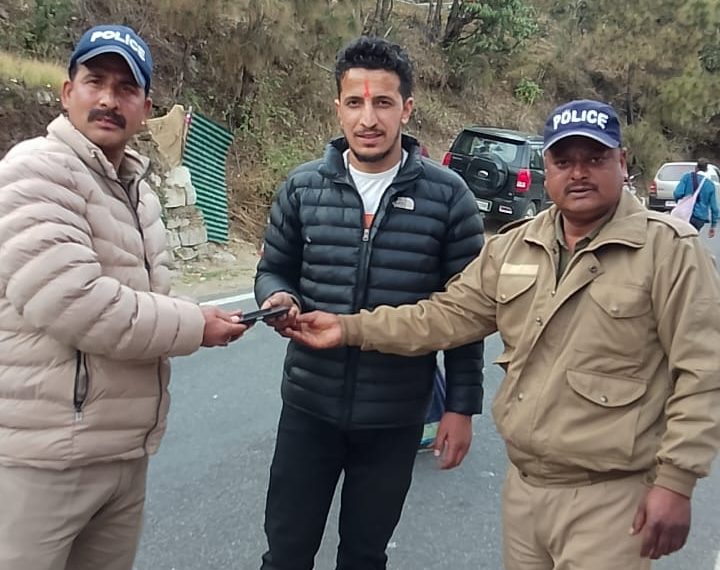अल्मोड़ा –दियारी धौलछीना निवासी हिमांशु जोशी ने चौकी जागेश्वर, थाना दन्या में ड्यूटीरत कानि0 महेश कुमार को सूचना दी कि उनका मोबाइल गरुड़ाबाज क्षेत्र में कहीं खो गया हैं। काफी ढूंढ खोज के बाद भी नहीं मिल पा रहा हैं। जिस पर चौकी में तैनात कानि0 द्वारा तत्काल उसकी सूचना साईबर सैल/ सर्विलांस टीम व क्षेत्र में ड्यूटीरत मोबाइल टीम को दी गयी। जिस पर पुलिस टीम द्वारा त्वरित कार्यवाही करते हुए मोबाइल की ढूंढ खोज शुरु की गयी। गरुड़ाबाज क्षेत्र के आस-पास के लोगों व दुकानदारों से भी जानकारी की गयी, सर्विलांस टीम की मदद से अथक प्रयासों के बाद मोबाइल को बरामद कर मोबाइल स्वामी श्री हिमांशु जोशी के सुपुर्द किया गया।