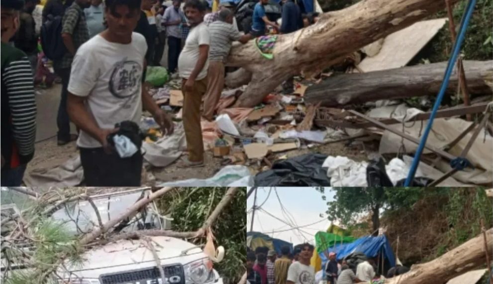 रानीखेत यहां से प्राप्त जानकारी के अनुसार यहां आंधी तूफान से मची तबाही में आठ लोग घायल हो गये। और दो गंभीर रूप से घायल हो गए जबकि एक की मौत हो गई। जानकारी के अनुसार आज शनिवार दोपहर 1 बजकर 30 मिनट पर रानीखेत में उर्स मेला चल रहा था। इसी बीच अचानक तेज आंधी तूफान आ गया। जिससे आए तेज हवाओं के बीच कई दूकानों के टेंट उखड़ गए। साथ ही एक विशाल पेड़ गिरने से कई लोग उसके नीचे दब गए। इस हादसे में एक व्यक्ति की दर्दनाक मौत हो गई है। मृतक की पहचान 50 वर्षीय संजू देवल के रूप में हुई है। वहीं 08 लोग घायल हैं। जिनका राजकीय चिकित्सालय रानीखेत में उपचार चल रहा है। आज दिनांक 01.06.2024 को कोतवाली रानीखेत क्षेत्र में उर्स मेले के दौराने पेड गिरने से दब कर कई लोग घायल हो गये और एक व्यक्ति की मृत्यु हो गयी।