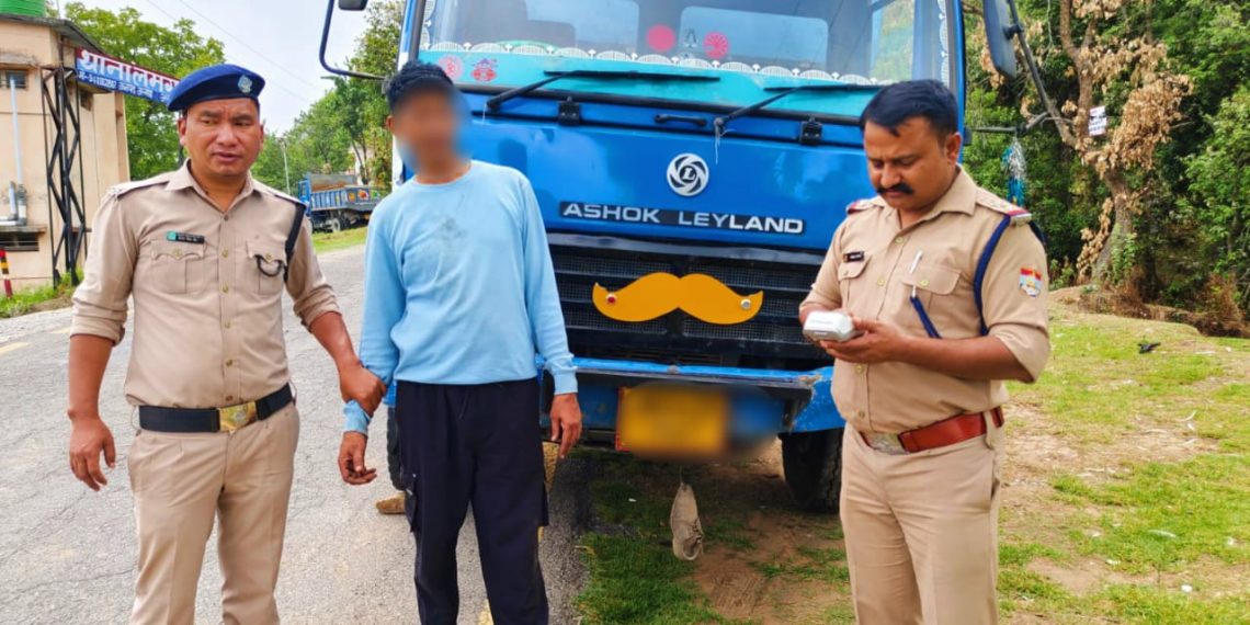 दौराने चैकिंग वाहन सं0- UK04-CB-1347 कैंटर का चालक देवेंद्र सिंह असवाल निवासी छडायल नायक हल्द्वानी, जनपद नैनीताल शराब के नशे मे वाहन चलाते हुए पाया गया। चालक को मोटरवाहन अधिनियम के तहत गिरफ्तार कर वाहन को सीज किया गया।