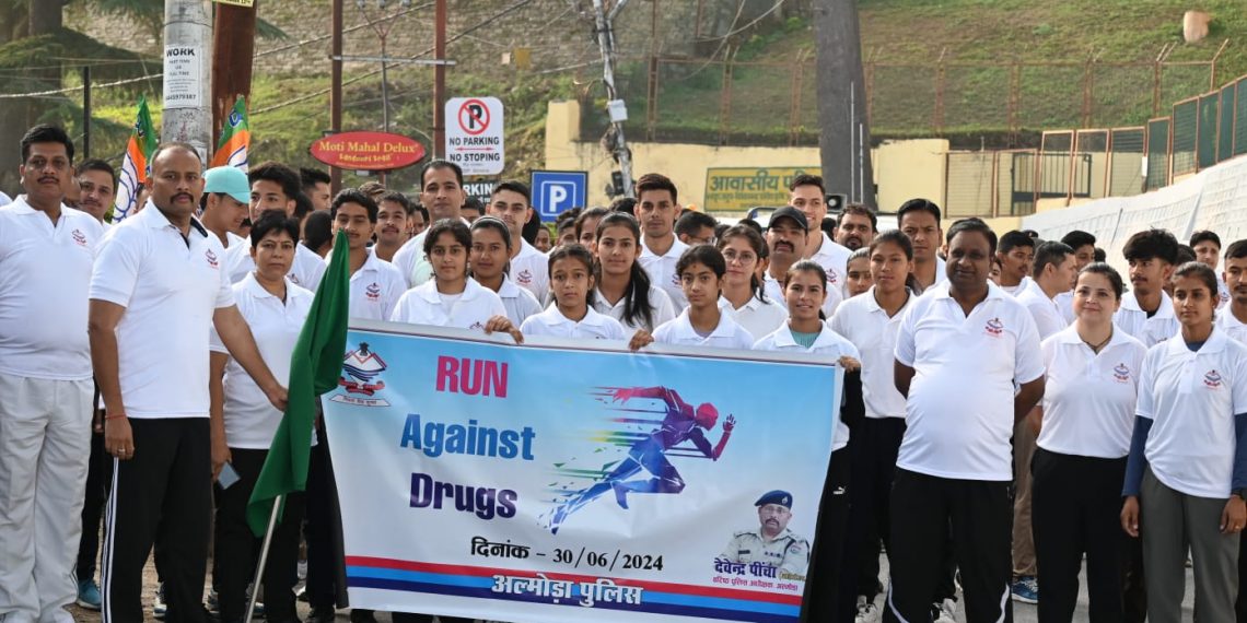 अल्मोड़ा आज दिनांक 30 जून 2024 को नशा मुक्त भारत अभियान के तहत वरिष्ठ पुलिस अधीक्षक देवेंद्र पींचा  द्वारा जनमानस को नशे के दुष्परिणामों से आगाह करने के लिए मैराथन दौड़ का आयोजन किया गया।