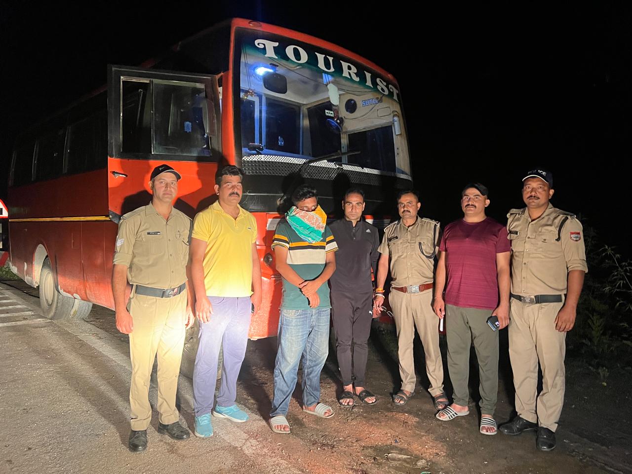 सीओ अल्मोड़ा  विमल प्रसाद के पर्यवेक्षण व थानाध्यक्ष सोमेश्वर  कश्मीर सिंह व एसओजी प्रभारी  कुन्दन सिंह रौतेला के नेतृत्व में एसओजी अल्मोड़ा व सोमेश्वर पुलिस की संयुक्त टीम द्वारा आज दिनांक 17 जुलाई 2024 की प्रातः दौलाघट तिराहे पर चेकिंग के दौरान बस संख्या                UK 02PA -0104 को चेक किया गया, जिसका चालक प्रदीप जोशी निवासी लालकुआं मौके से फरार हो गया‌। चालक के बराबर वाली सीट पर बैठे व्यक्ति राकेश पांडे  को मौके से गिरफ्तार किया गया है। बस को चेक करने पर बस से 380 टिन अवैध लीसा से भरे बरामद हुए। अभियुक्तगणों के विरुद्ध थाना सोमेश्वर में धारा 26/ 42 भारतीय वन अधिनियम के अंतर्गत अभियोग पंजीकृत किया गया है।