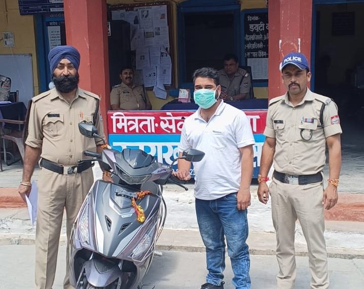 अल्मोड़ा दिनांक- 30.08.2023 को वादी भुवन चन्द्र तिवारी ने कोतवाली अल्मोड़ा में तहरीर दी कि दिनांक- 17.08.2023 को वीरेन्द्र सिंह बिष्ट ने तिवारी मोर्टस बाईपास लक्ष्मेश्वर शोरुम में आकर एक स्कूटी खरीदी जिसके एवज उसके द्वारा एक चेक दिया गया, उक्त चेक से पैसे निकासी हेतु बैंक जाने पर पता चला कि खाते में पैसा नही है और वीरेन्द्र सिंह बिष्ट से सम्पर्क हेतु उसके मोबाईल नम्बर पर काल की गयी तो मोबाईल बंद आ रहा है। उक्त तहरीर के आधार पर कोतवाली अल्मोड़ा में धारा- 420 भादवि के तहत एफआईआर पंजीकृत की गयी। रामचन्द्र राजगुरु, वरिष्ठ पुलिस अधीक्षक अल्मोड़ा द्वारा उक्त मामले में नामजद अभियुक्त की गिरफ्तारी हेतु प्रभारी निरीक्षक कोतवाली अल्मोड़ा को निर्देशित किया गया। सीओ अल्मोड़ा विमल प्रसाद के पर्यवेक्षण व प्रभारी निरीक्षक कोतवाली अल्मोड़ा अरुण कुमार के नेतृत्व में गठित पुलिस टीम द्वारा सुरागरसी पतारसी करते हुए अभियुक्त वीरेन्द्र सिंह बिष्ट को दिनांक- 31.08.2023 को कोसी सोमेश्वर रोड दौलाघट तिराहे से गिरफ्तार करते हुए उसके कब्जे से धोखाधड़ी से क्रय की गयी स्कूटी भी बरामद की गयी। अभियुक्त को मा0न्यायालय में पेश किया जा रहा है।