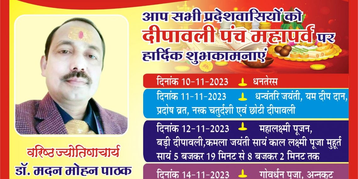 अल्मोड़ा सुप्रसिद्ध वरिष्ठ ज्योतिषाचार्य पंडित डाक्टर मदन मोहन पाठक ने बताया कि इस बार दीपावली पंच महादीप पर्व क्रमशः इस प्रकार हैं ——–