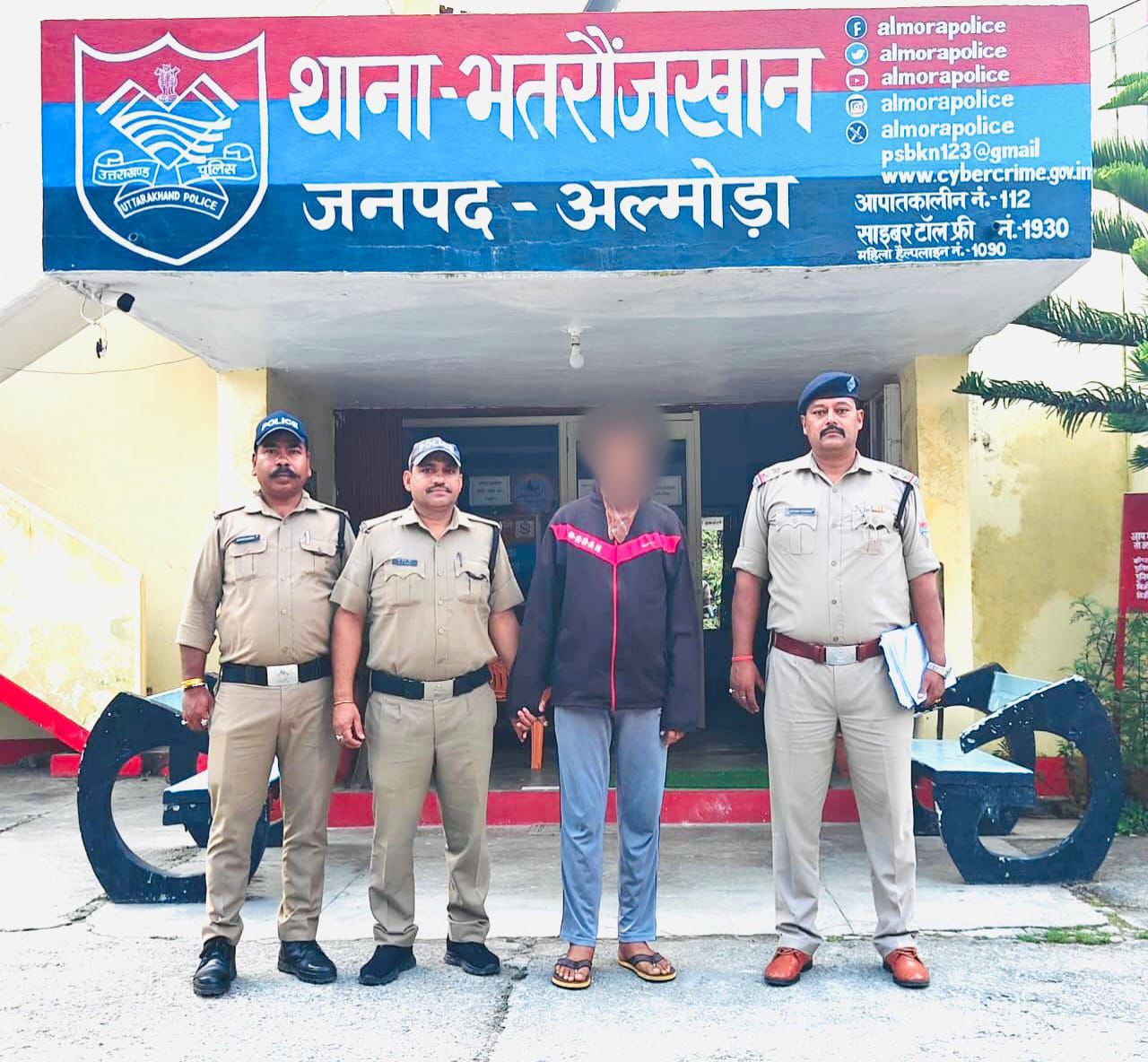 अपर पुलिस अधीक्षक  हरबन्स सिंह तथा सीओ रानीखेत  विमल प्रसाद के पर्यवेक्षण में, थानाध्यक्ष भतरौजखान  अवनीश कुमार के नेतृत्व में पुलिस टीम ने सुरागरसी व पतारसी कर मात्र 24 घंटे में आरोपी चन्द्रशेखर (आयु 50 वर्ष) को गिरफ्तार कर लिया।