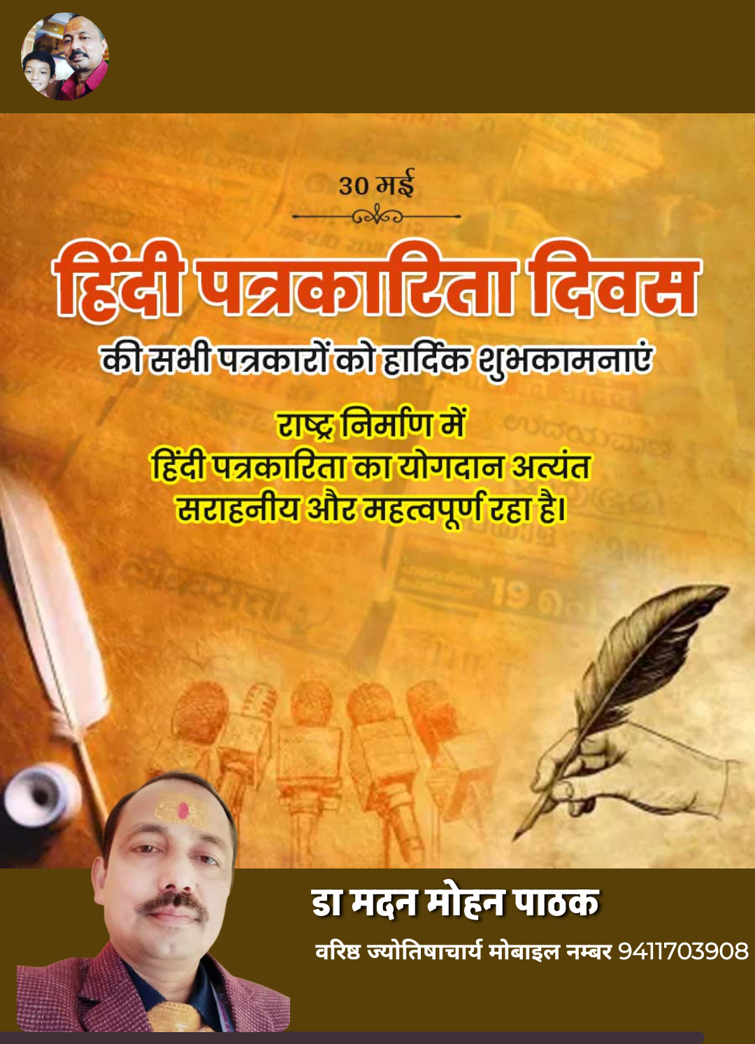 मित्रो “पत्रकारिता लोकतंत्र का चौथा स्तंभ है” — यह उक्ति केवल एक वाक्य नहीं, बल्कि उस सशक्त माध्यम का प्रतीक है जो समाज को जागरूक, सचेत और सजग बनाता है। 30 मई का दिन इस स्तंभ की नींव रखने वाली भाषा हिंदी और उसके पहले समाचार पत्र ‘उदन्त मार्तण्ड’ की स्मृति में मनाया जाता है। इस दिन हम न केवल हिंदी पत्रकारिता के उद्भव को स्मरण करते हैं, बल्कि इसके समाजिक, राजनीतिक और सांस्कृतिक योगदान का सम्मान भी करते हैं।