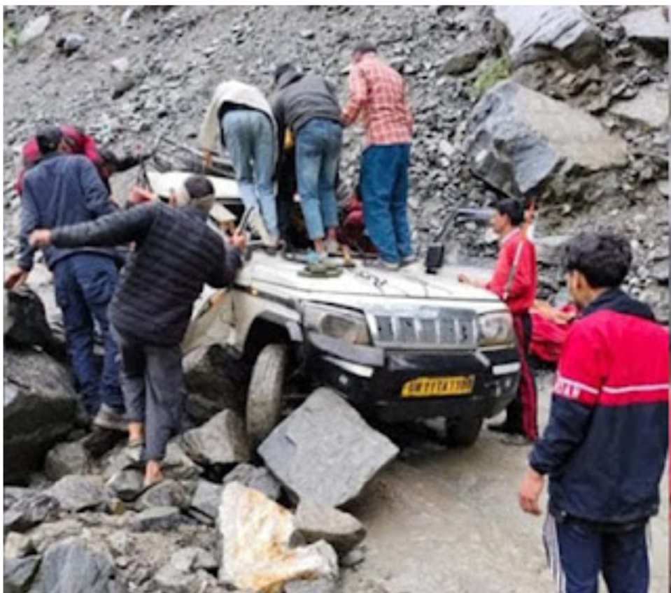 रुद्रप्रयाग में भूस्खलन का कहर, यात्री वाहन पर बोल्डर गिरने से दो की मौत, तीन घायल