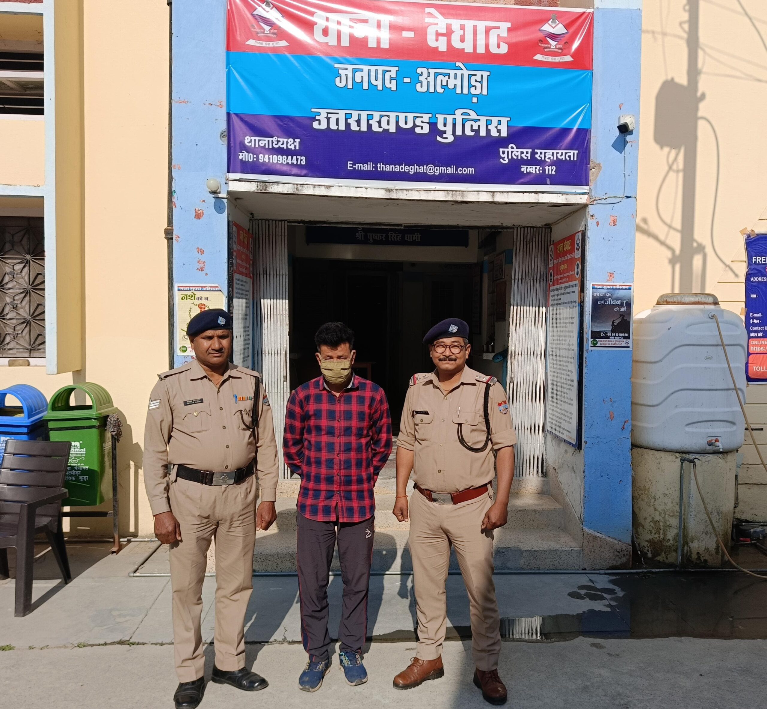 जिस क्रम में दिनांक 02.04.2025 को अपर पुलिस अधीक्षक अल्मोड़ा  हरबन्स सिंह व सीओ रानीखेत विमल प्रसाद के पर्यवेक्षण में थानाध्यक्ष देघाट  दिनेश नाथ महन्त के नेतृत्व में देघाट पुलिस टीम द्वारा फौ0 वा0 सं0- 02/2022 धारा 194/207 एमवी एक्ट से सम्बन्धित वारण्टी अभियुक्त मदन सिंह उम्र- 35 वर्ष पुत्र कुशल सिंह निवासी लवडोवा पट्टी, गोनियारो तह0 धारी जनपद नैनीताल को उसके घर लवडोवा पट्टी, गोनियारो तह0 धारी से गिरफ्तार कर  न्यायालय में पेश किया गया।